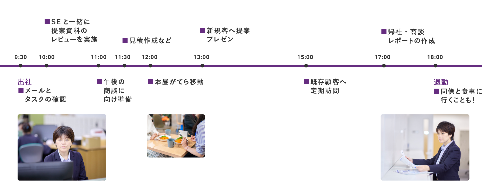 入社以来、新規営業と既存顧客対応の2つを担当しています。一方的な売り込みはなく、展示会やHPから当社に興味を持ってくださったお客様に対してヒアリングや提案を行い、受注を目指します。最初の頃は製品を説明することで精一杯でしたが、今ではお客様自身が気づいていない課題の発見や、製品を導入した一歩先の姿をふまえた提案ができるようになりました。お客様にとって、システム導入は莫大なコストを要する一大プロジェクト。こちらとしても費用やスケジュールの的確な交渉、社内の人員アサインなど難しい調整が求められ、受注が決定するまでの提案活動は早くて数ヶ月、長いと数年かかります。でも、そうして時間をかけて叶えたい未来を共に描くことが、受注につながるのだと信じています。