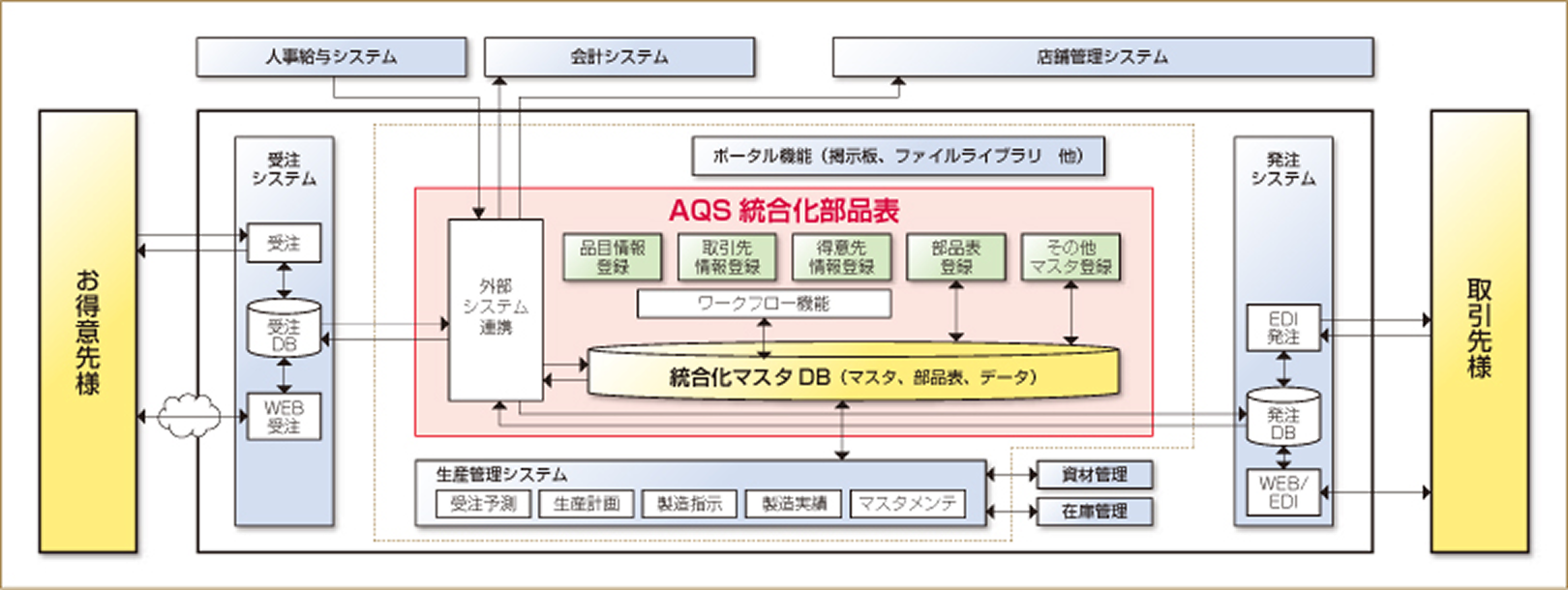 統合化部品表を中心とした生産管理システムでDBを一元化。