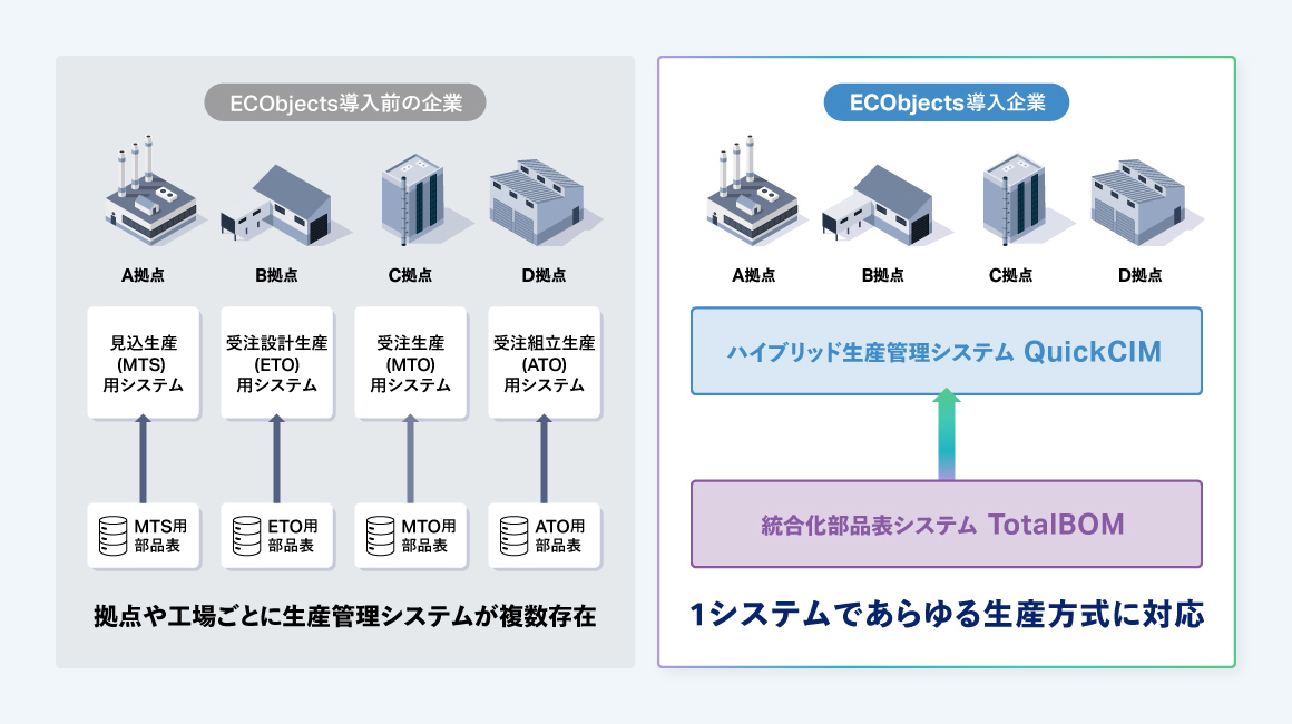 生産形態ごとに個別にシステムを作ることなく、1システムでの運用が可能です。